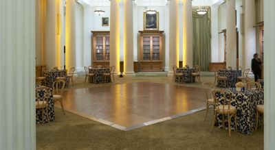 Portable dance floor provides a sturdy and safe area for guests to dance freely during a large event.